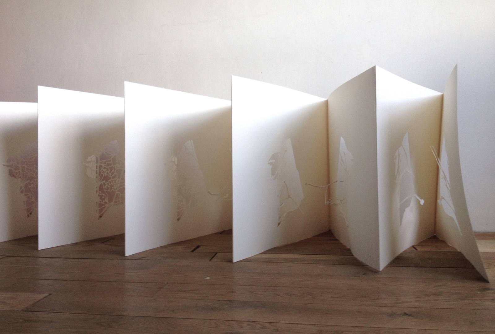 Mar gh’era, artist’s book, stipped paper reporting the maps of Porto Marghera from 1887 to 2004, 2011.